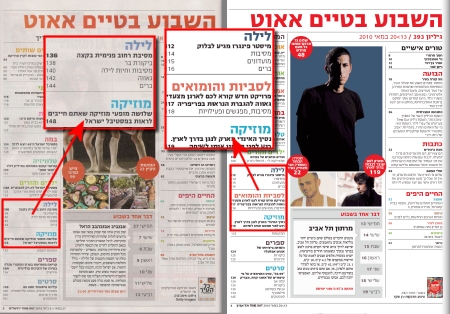 קוראת בעלת אזרחות כפולה (תל-אביב/ירושלים) הבחינה שבטיים אאוט ירושלים החדש חסר מדריך שמופיע באחיו התל אביבי, “לסביות והומואים”. “המדור נכנס בתוך ‘הלילה’. הוא קיים שם”, מסביר עורך טיים אאוט ירושלים, אורי שאלתיאל.