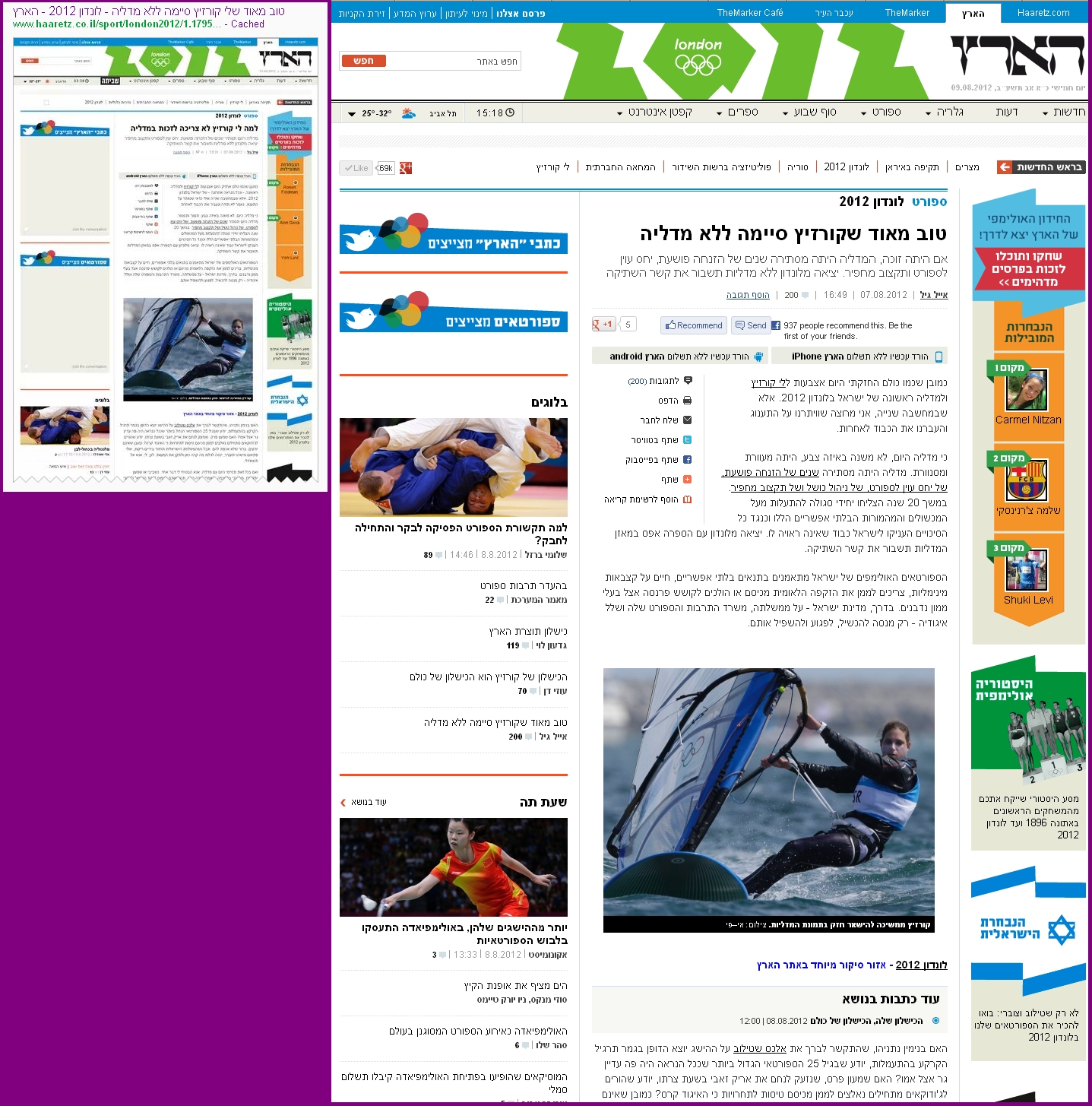 לי קורזיץ לא זוכה במדליה ואתר “הארץ” משכתב כתבת ארכיון בהתאם
