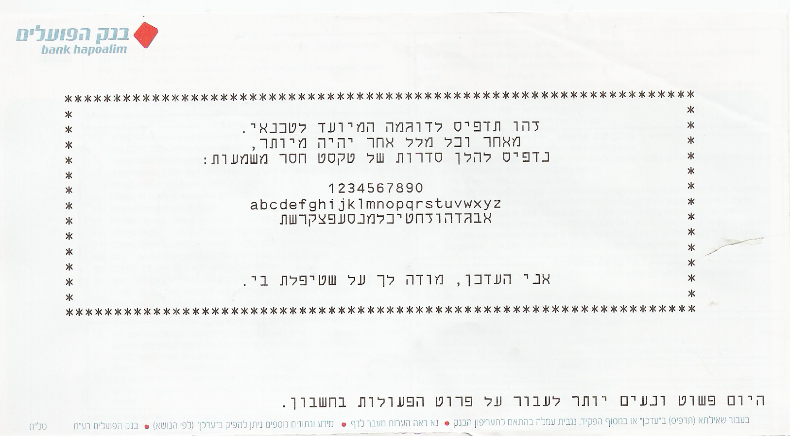 העדכן של בנק הפועלים מודה לטכנאי שטיפל בו