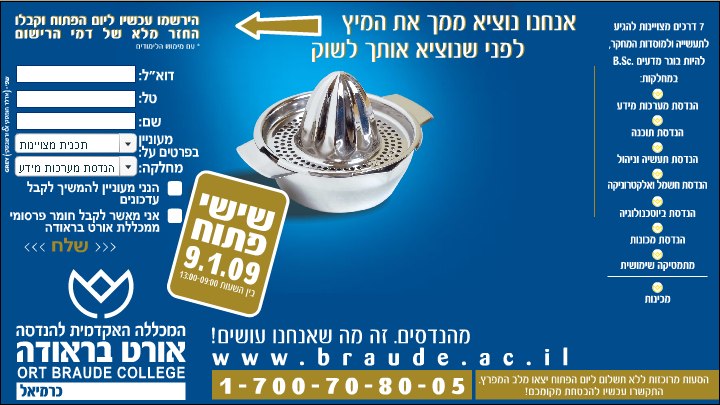 למכללה האקדמית להנדסה אורט בראודה (שם מוזר בפני עצמו) יש קמפיין חדש: