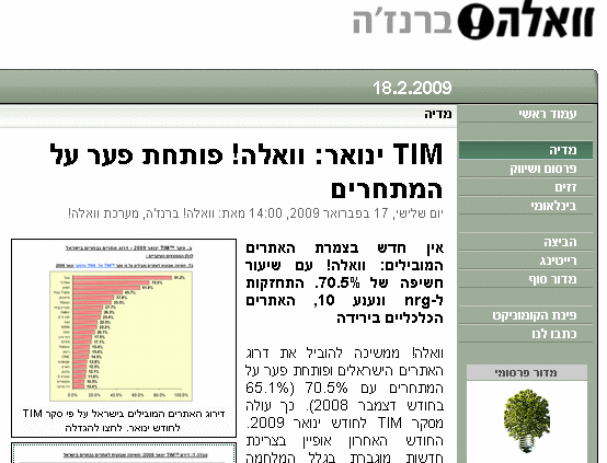 אנשי וואלה כל כך התרגלו לשמוע את עצמם אומרים שהם האתר המוביל בסקר TIM (“וואלה! ממשיכה להוביל את דרוג האתרים הישראלים”) עד שבסקירה הנוכחית הם כבר שכחו לגמרי להזכיר את השם המפורש גוגל. פחחח, כולה מקום ראשון והובלה בפער של 20.7%.