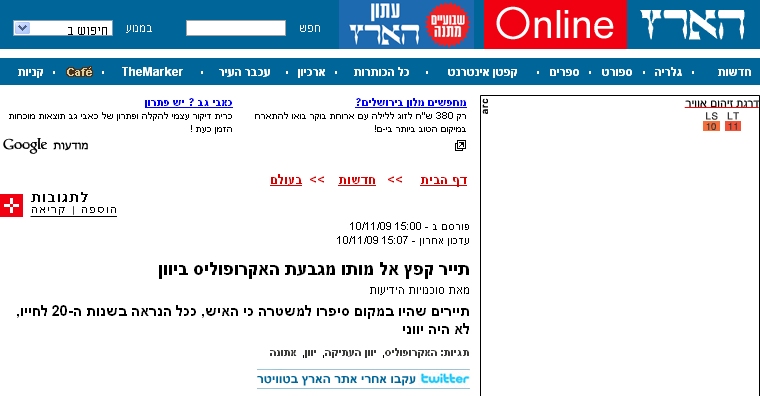 כותרת משנה תמוהה באתר הארץ, 10.11.2009. הלשין עמית קלינג.