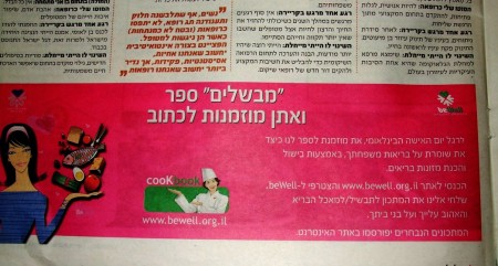 ראיתי את המודעה המצ”ב היום בעיתון (איזה מוסף פרסומי-רפואי של הארץ שבמקרה פרסם כתבונת על נשים ברפואה שחשבתי שיהיה לה פוטנציאל להיות מעניינת), והתעצבנתי. נראה לי שהיוצרים של הדבר הזה אפילו לא קלטו כמה אוקסימורוני (או סתם מורוני) זה לכתוב ‘לכבוד יום האישה הבינלאומי, אנחנו יוצאים מנקודת הנחה שאת זו שצריכה לבשל לכל המשפחה שלך! תראי, רקע ורוד!’… בכל אופן, אחרי שגמרתי להתעצבן, רציתי להרגיש שאני לא היחידה אז חשבתי שאולי אצלך באתר יהיה לזה מקום. :)