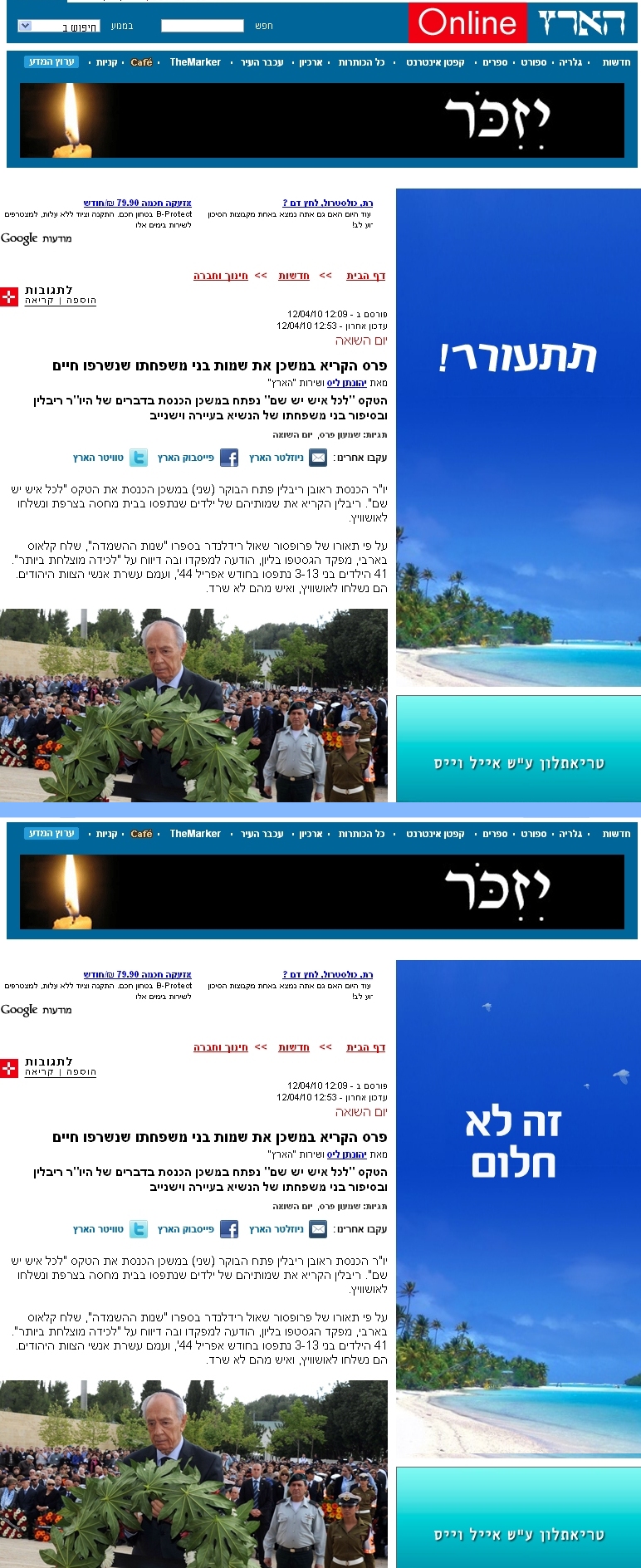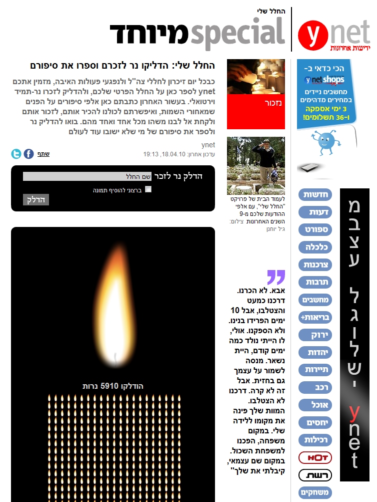 דמיון חזותי בין הפרסומת ונר הזכרון ב-ynet: