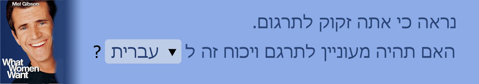 1.8. כשאתם באמצע ריב ואין לך מושג בכלל על מה, יקפוץ חלון עם תמונה של מל גיבסון, שיציע: “האם תהיה מעוניין שאתרגם לך את הוויכוח איתה לעברית?”