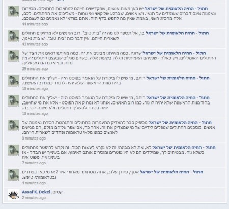 בשלב מסוים נשארו בסטטוס של דף “החתול” בעיקר תשובות של מפעילי הדף לתגובות שנמחקו:
