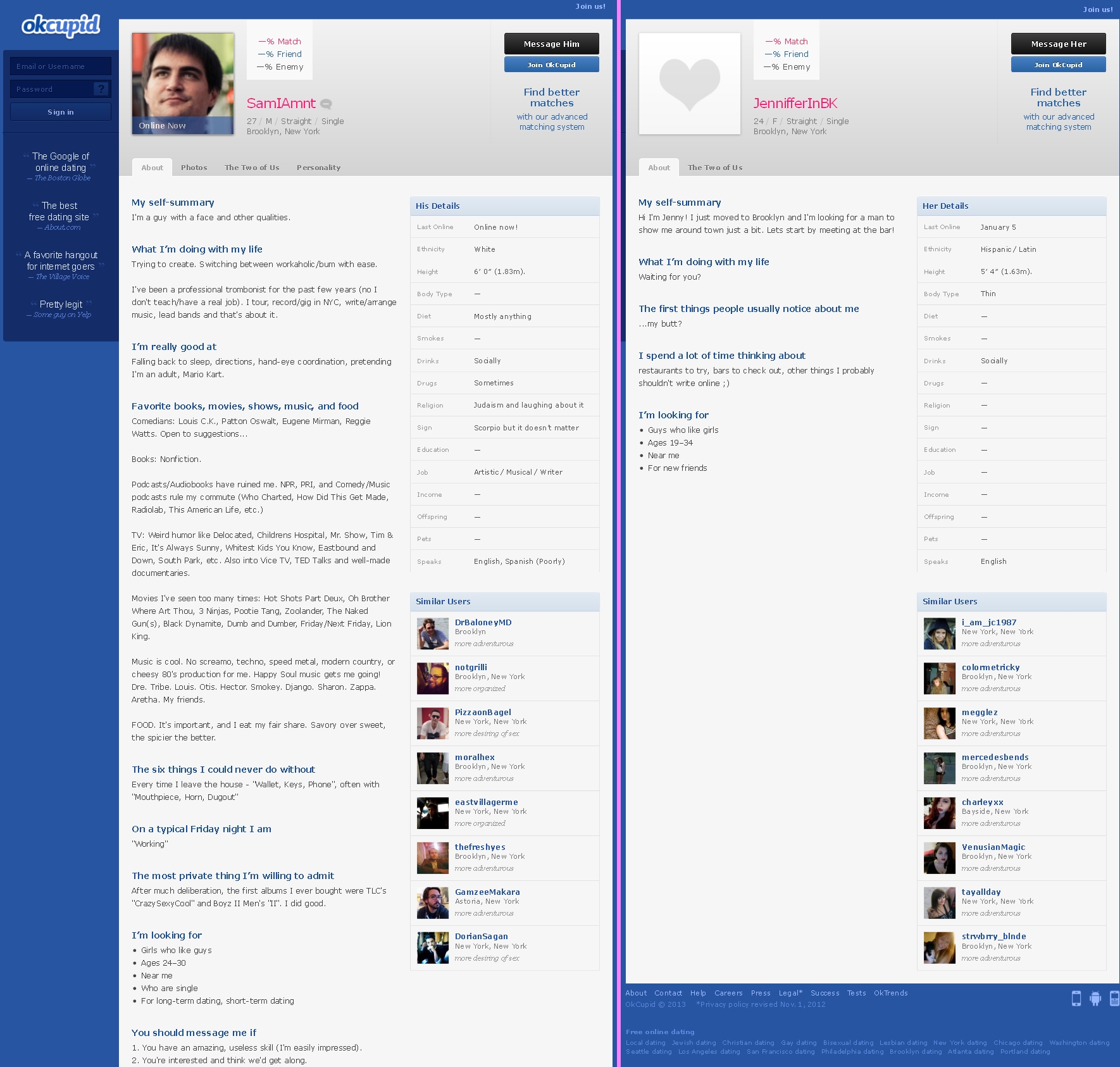 “יצרתי חשבון אימייל מזוייף ופרופיל OKC מעורר אמון למחצה בשם ‘ג’ניפר גונזלס’ – אישה בת 24 שבדיוק עברה לברוקלין ומחפשת גבר שיקח אותה לבלות”, סיפר נירנברג בבלוגו. “שלחתי הודעה לגנב (לפרופיל שלי) וצ’וטטתי איתו בתור ג’ניפר… מוזר”.