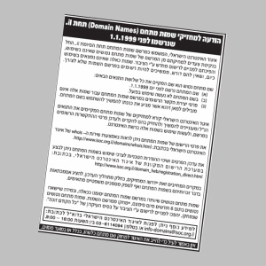 […] פברואר הודיע איגוד האינטרנט על ניקוי מרשם הדומיינים מדומיינים […]