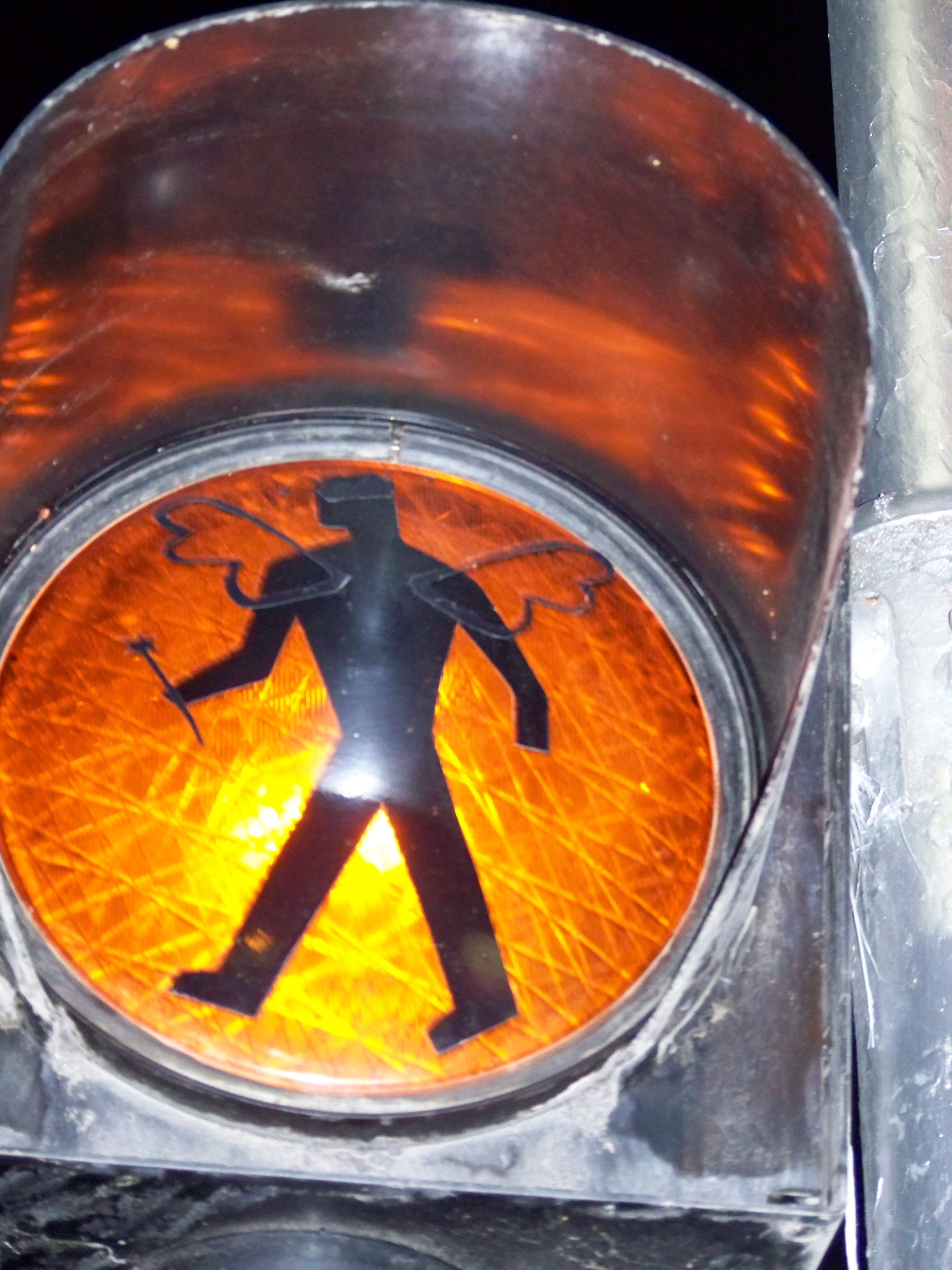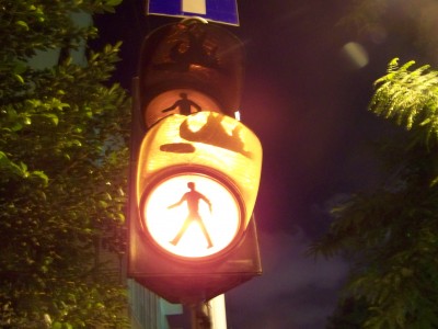 הרמזורים שמורים על זכות קדימה להולכי רגל, אלה הכתומים עם האיש השחור, הם מוקד פופולרי לשיבושים, מכיוון שקל מאוד לבצע זאת באמצעות הוספת אלמנטים ממדבקות שחורות. הנה כמה שאספתי ברחובות תל אביב: