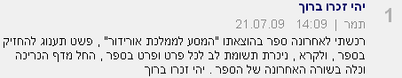 […] טוקבקים שמפרסמים את הספר “המסע לממלכת אורידור” פורסמו בכתבות על מותו של מו”ל הספר, אריה ניר, סיפרתי כאן. […]