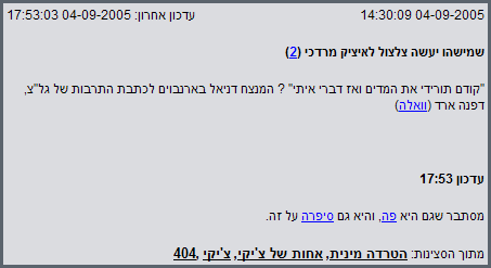 4 בספטמבר, 2005 | בנושאים 404, פורסם במקור ב"שוקס"