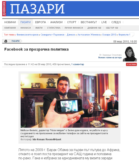 צילומים בתקשורת בנמיביה, הפיליפינים ובולגריה (קידום עצמי)