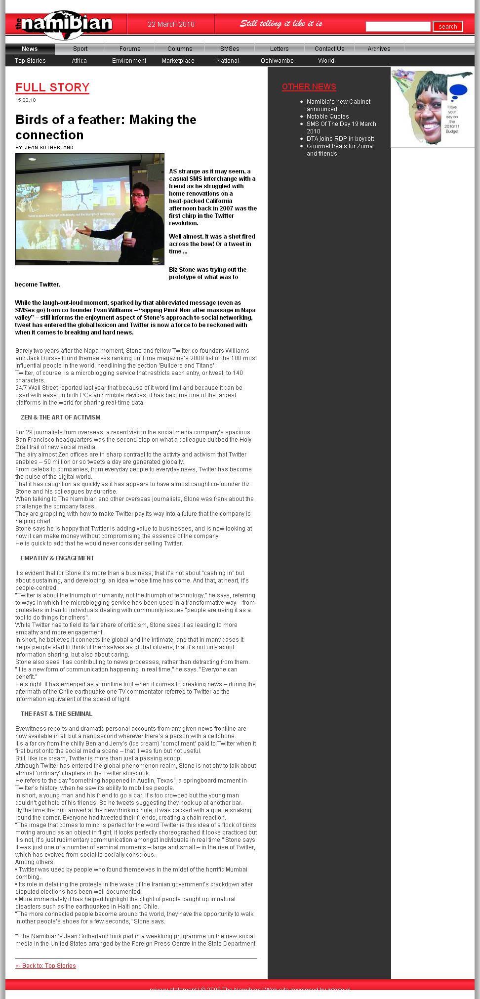ד’ה נמיביאן, נמיביה (בעיתון ובאתר, שם נשמט הקרדיט):