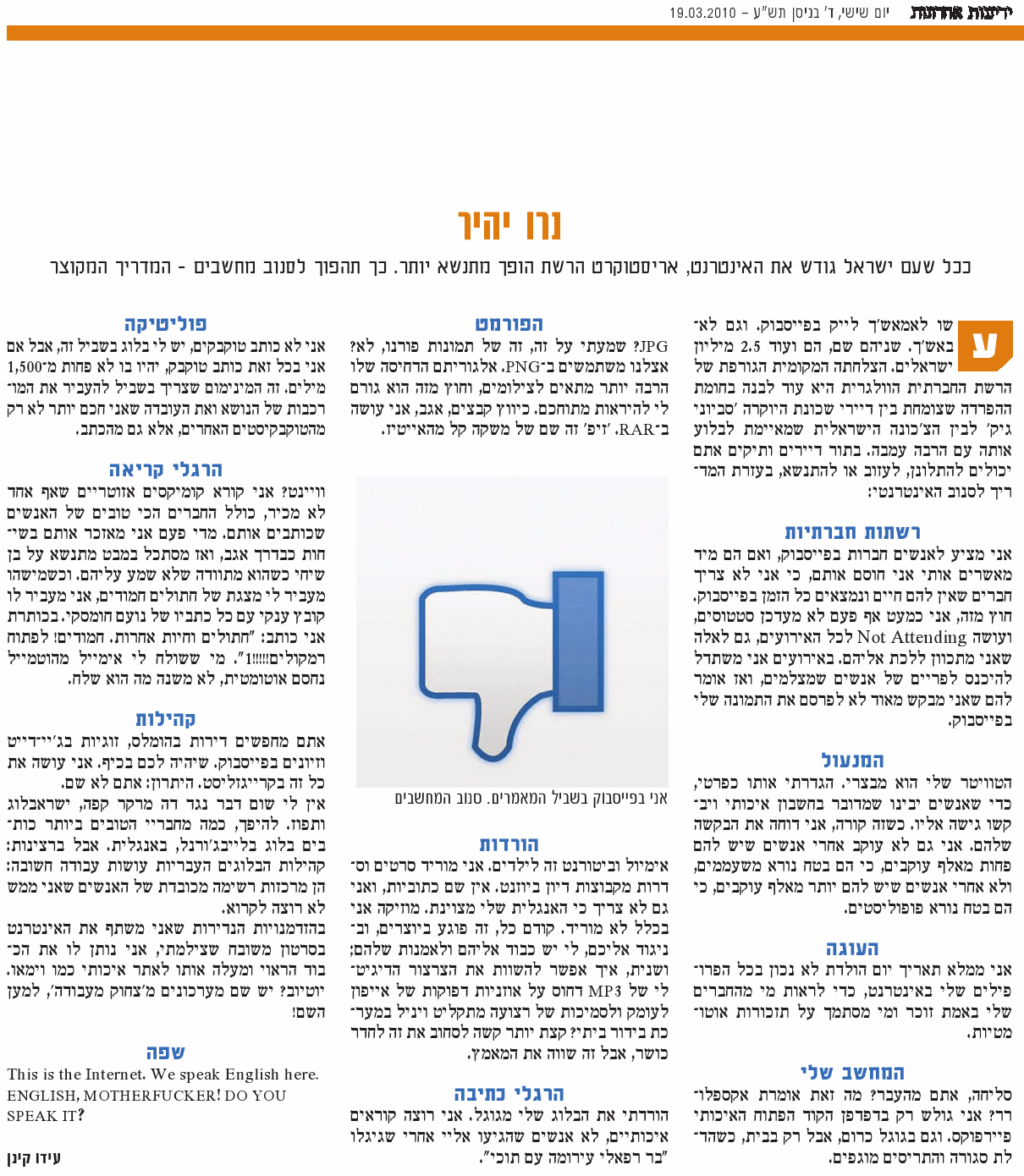 […] וכתוב וחשוֹב. בטור שכתבתי על סנוביזם אינטרנטי [עדכון: הנה הוא], הצבעתי על ההצלחה (2.5 מיליון חברים) של הרשת החברתית […]