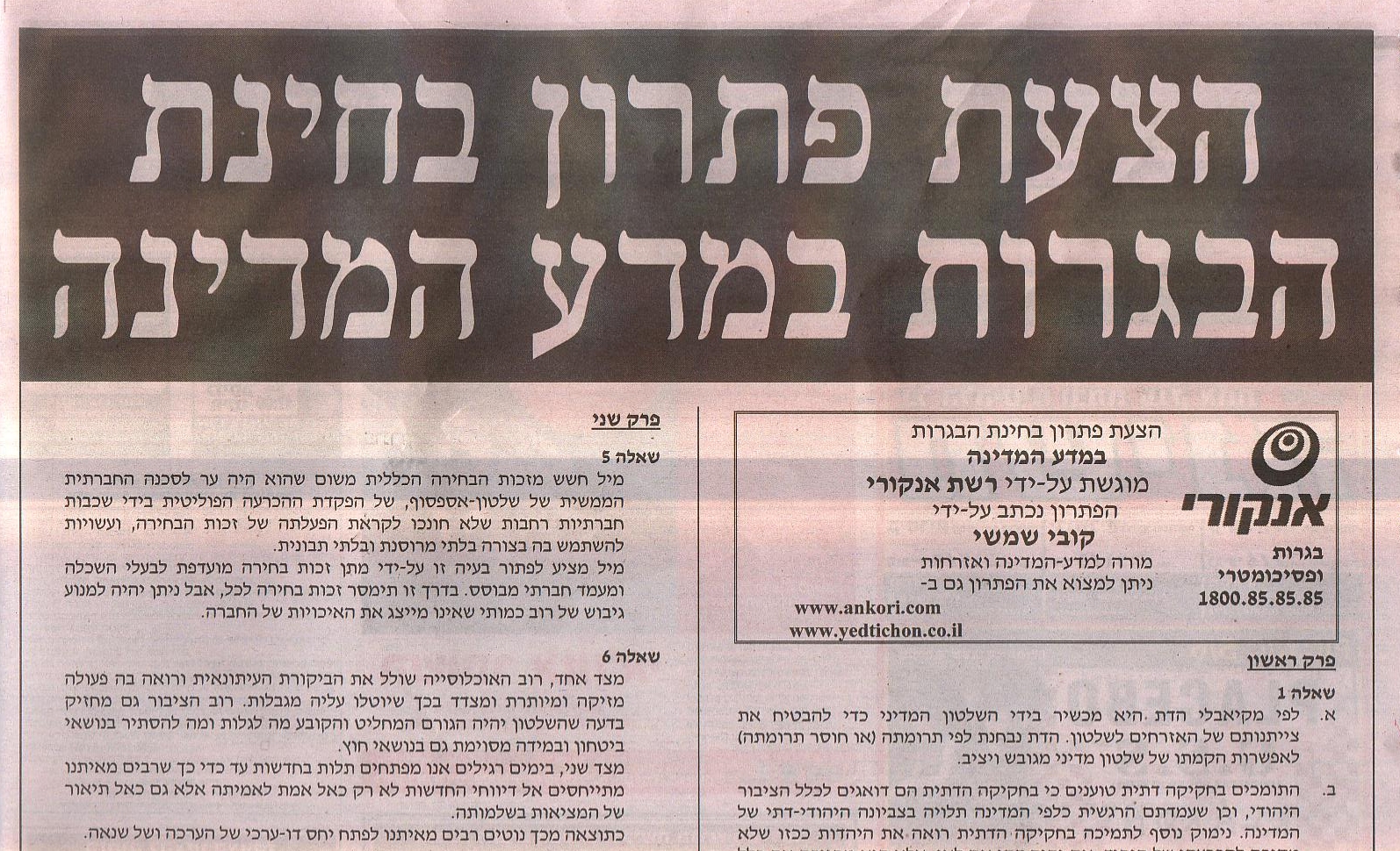 מעניין לקרוא את פתרון שאלה 6 בבחינת הבגרות במדע המדינה לפי המורה קובי שמשי מאנקורי, שפורסמה ב”ידיעות אחרונות”: