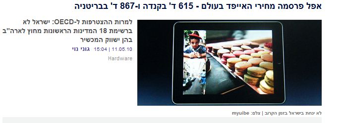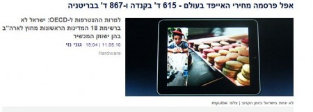 אתר דה-מרקר (11.5.10): “למרות ההצטרפות ל-OECD: ישראל לא ברשימת 18 המדינות הראשונות מחוץ לארה”ב בהן ישווק המכשיר”. כי כידוע, החלטת ה-OECD מחייבת את כל החברות בעולם להביא מוצרים לישראל.