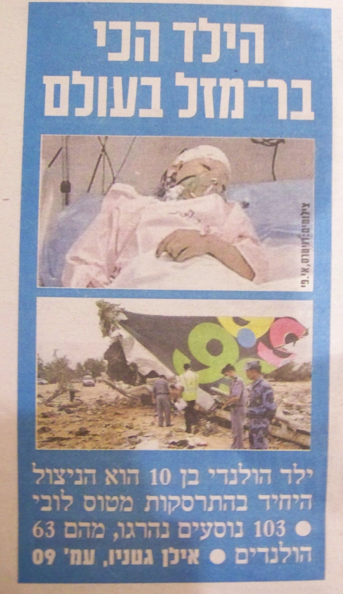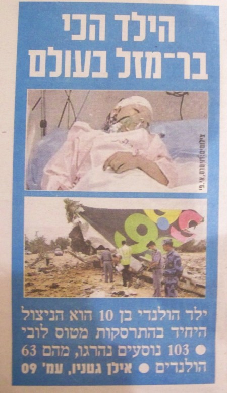 מי הילד הכי בר-מזל בעולם? לפי ישראל היום, זה הילד שכל משפחתו נהרגה, יחד עם כל שאר הנוסעים חוץ ממנו, בתאונת מטוס (13.5.10).