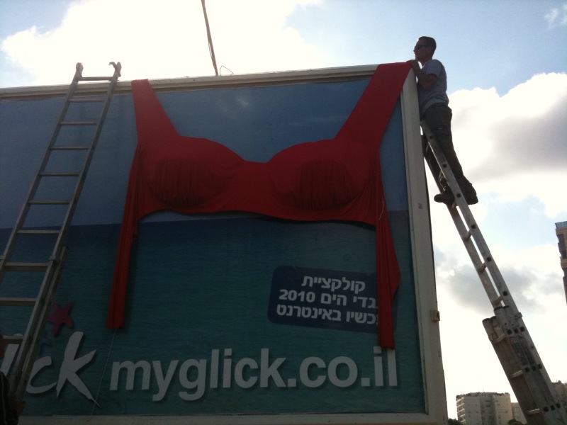 אחרי הקיפול: צילומים – כך מלבישים ביקיני על שלט.