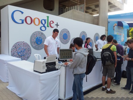 דוכן גוגל פלוס באוניברסיטת תל אביב. צילום: קרן