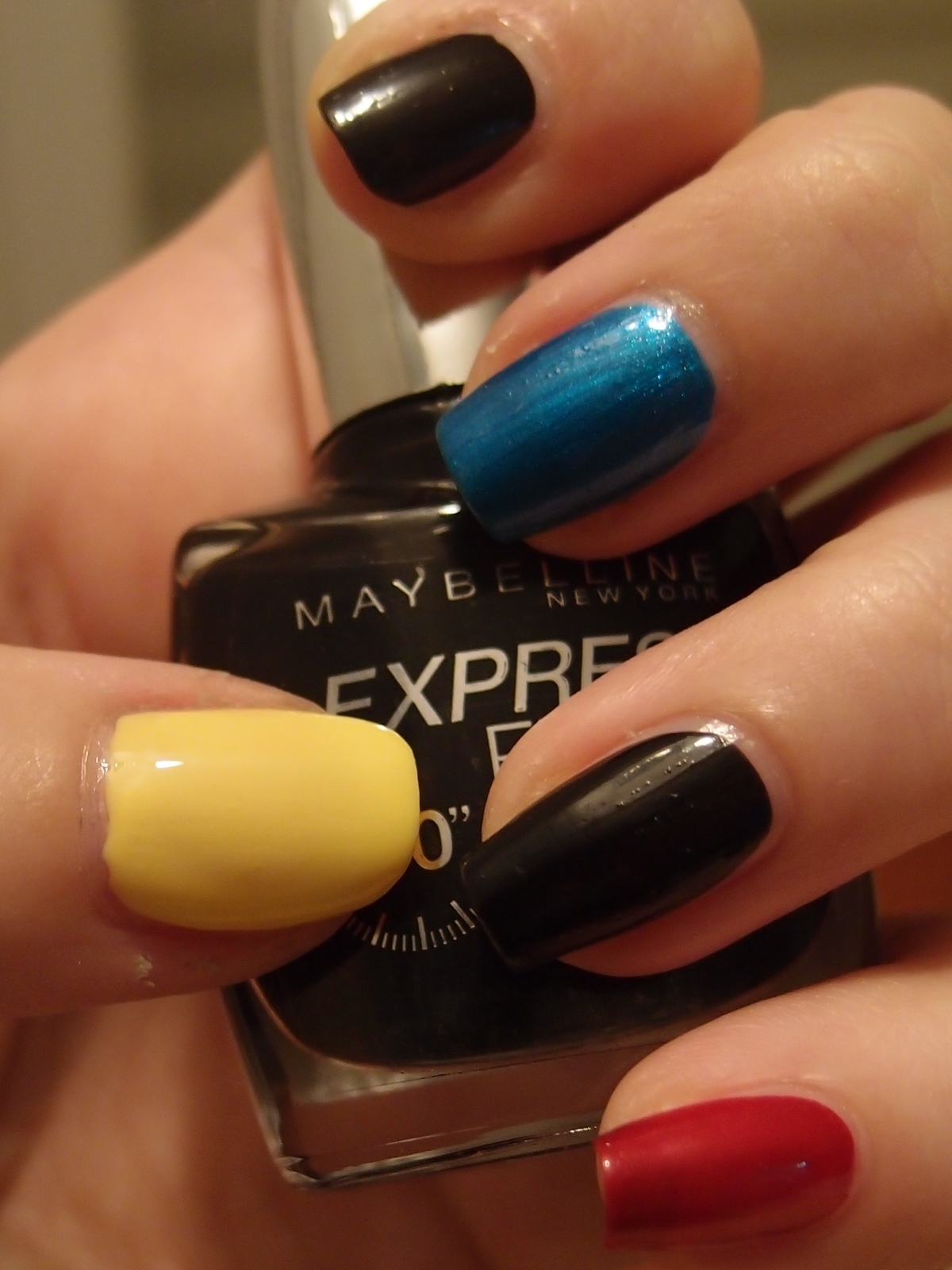 וכשמחברים את כולם ביחד, יוצא אחד המניקורים המגניבים ביותר שעשיתי אי פעם, אם יורשה לי להחמיא לעצמי. הוא פשוט כיפי, וקוצר מחמאות על ימין ועל שמאל.